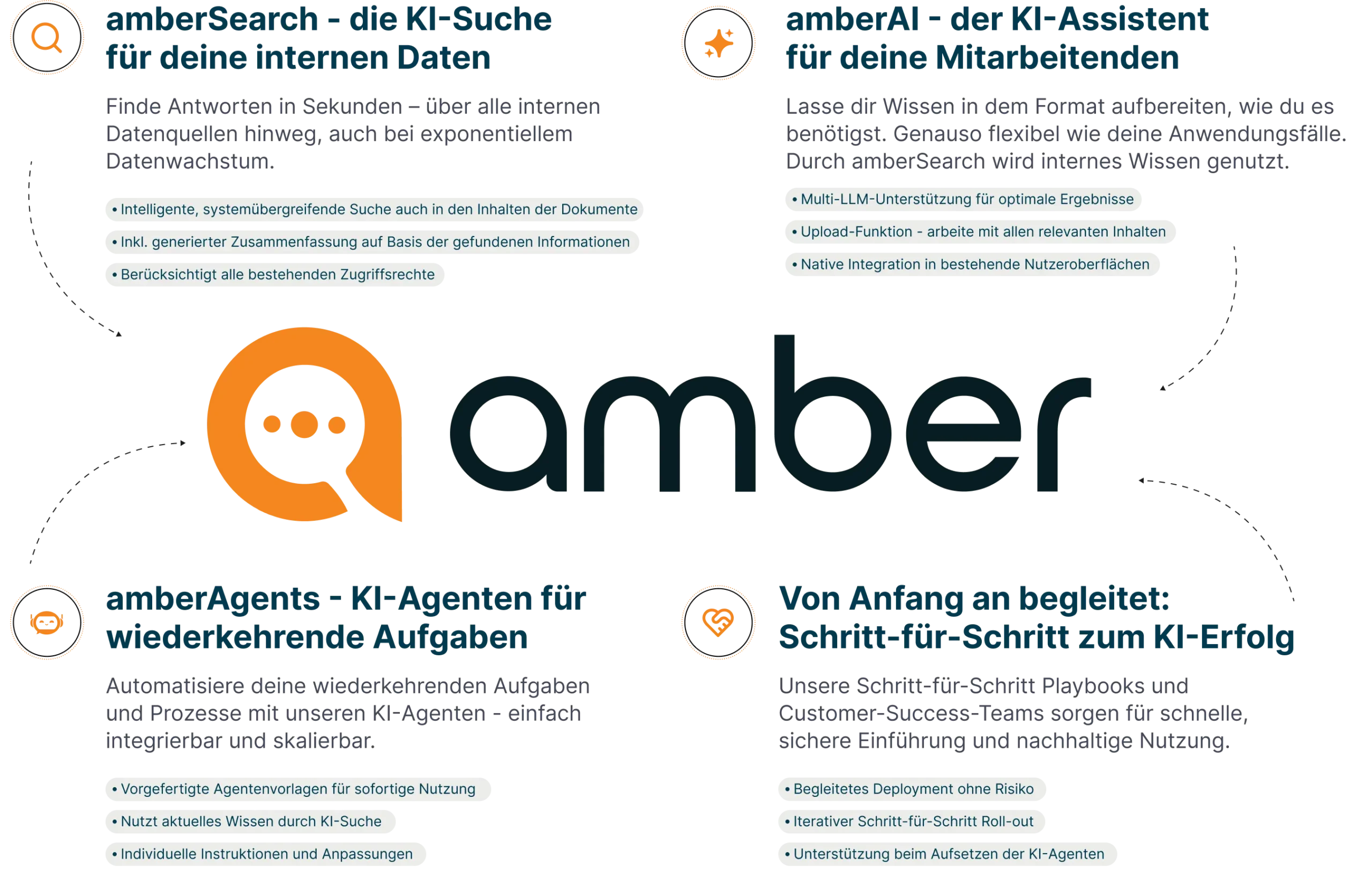 amber löst die Herausforderungen moderner Wissensarbeit – mit einer einzigen, sicheren BusinessKI – entwickelt in Deutschland